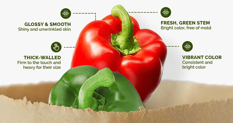There are many different types of Sweet Peppers, but there are several key things you can look for in any Pepper to make sure you’re picking the freshest and most flavorful.