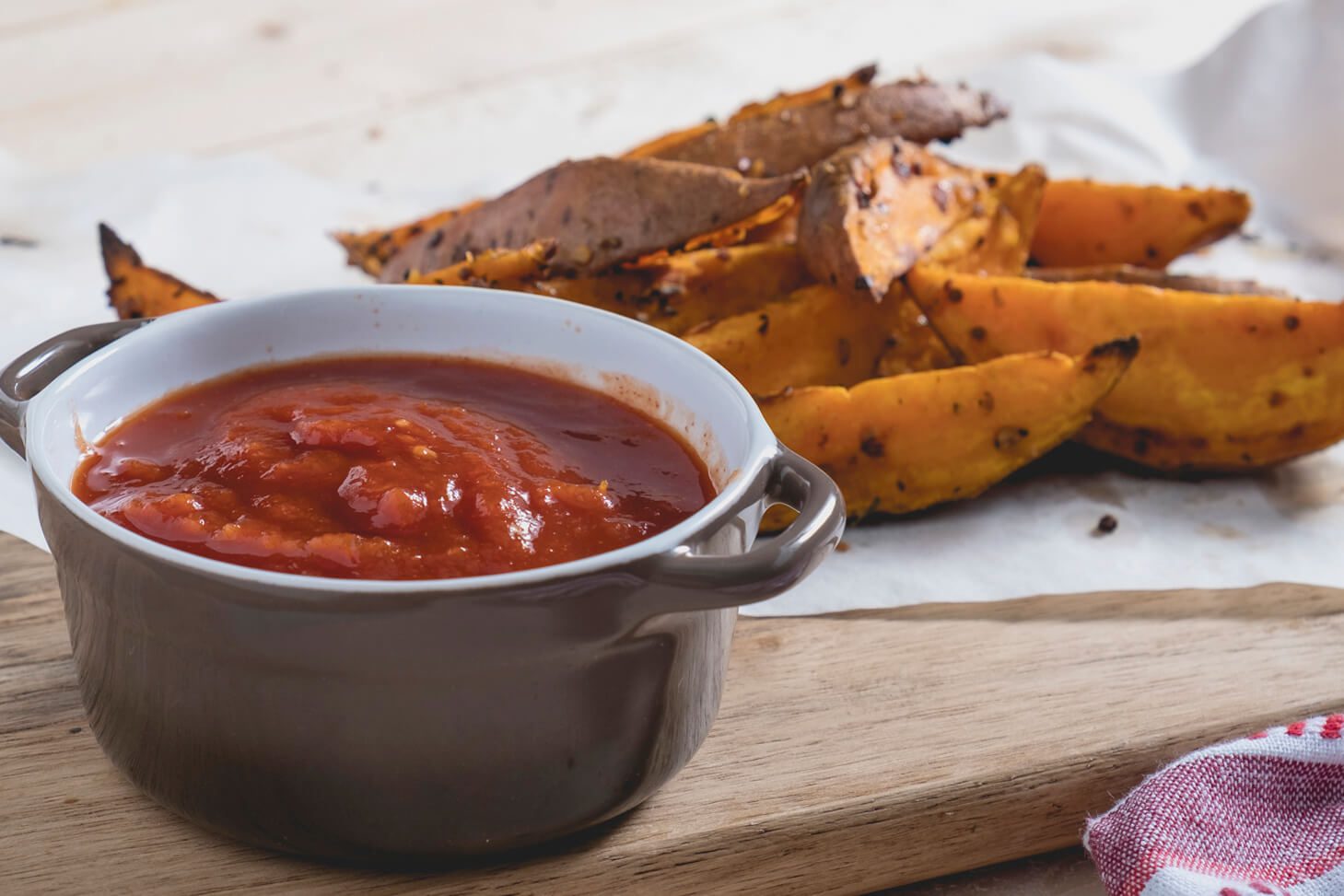 For a great pairing, create some healthy sweet potato fries to dip in your ketchup.
