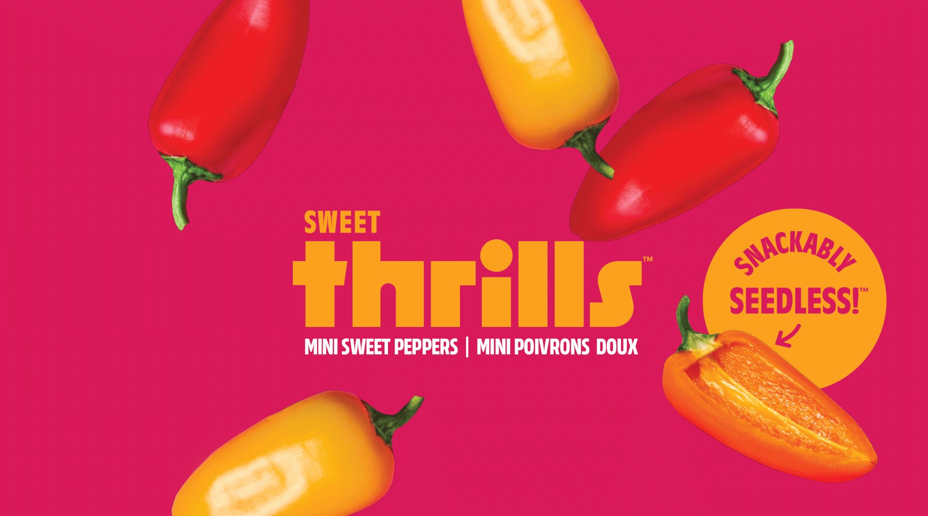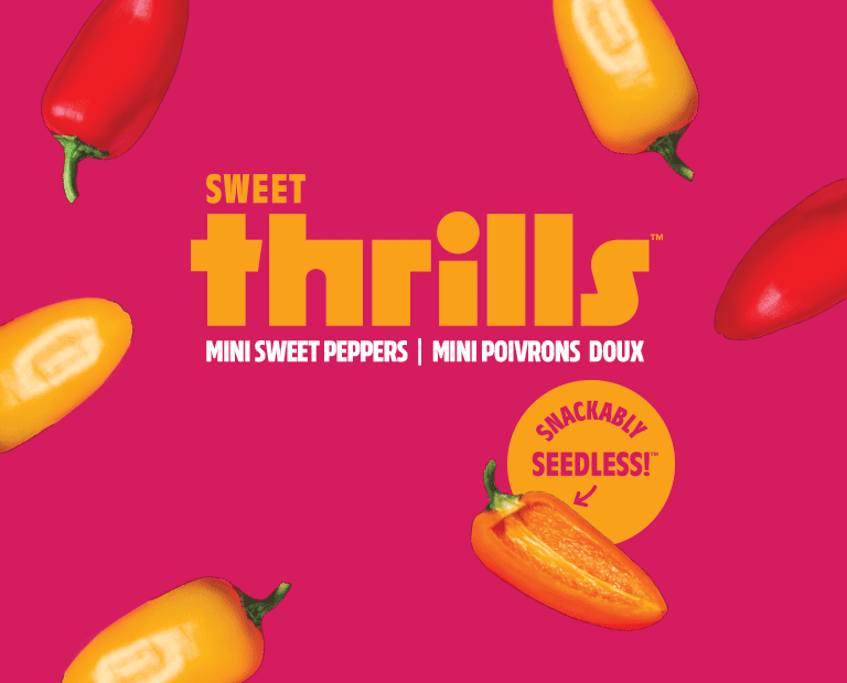 Versatile and convenient, these seedless sensations make it easy to take your tastebuds on a joyride. Pastas to peppers, salads to snacks, Sweet Thrills™ mini peppers bring delicious excitement to any table or lunchbox.