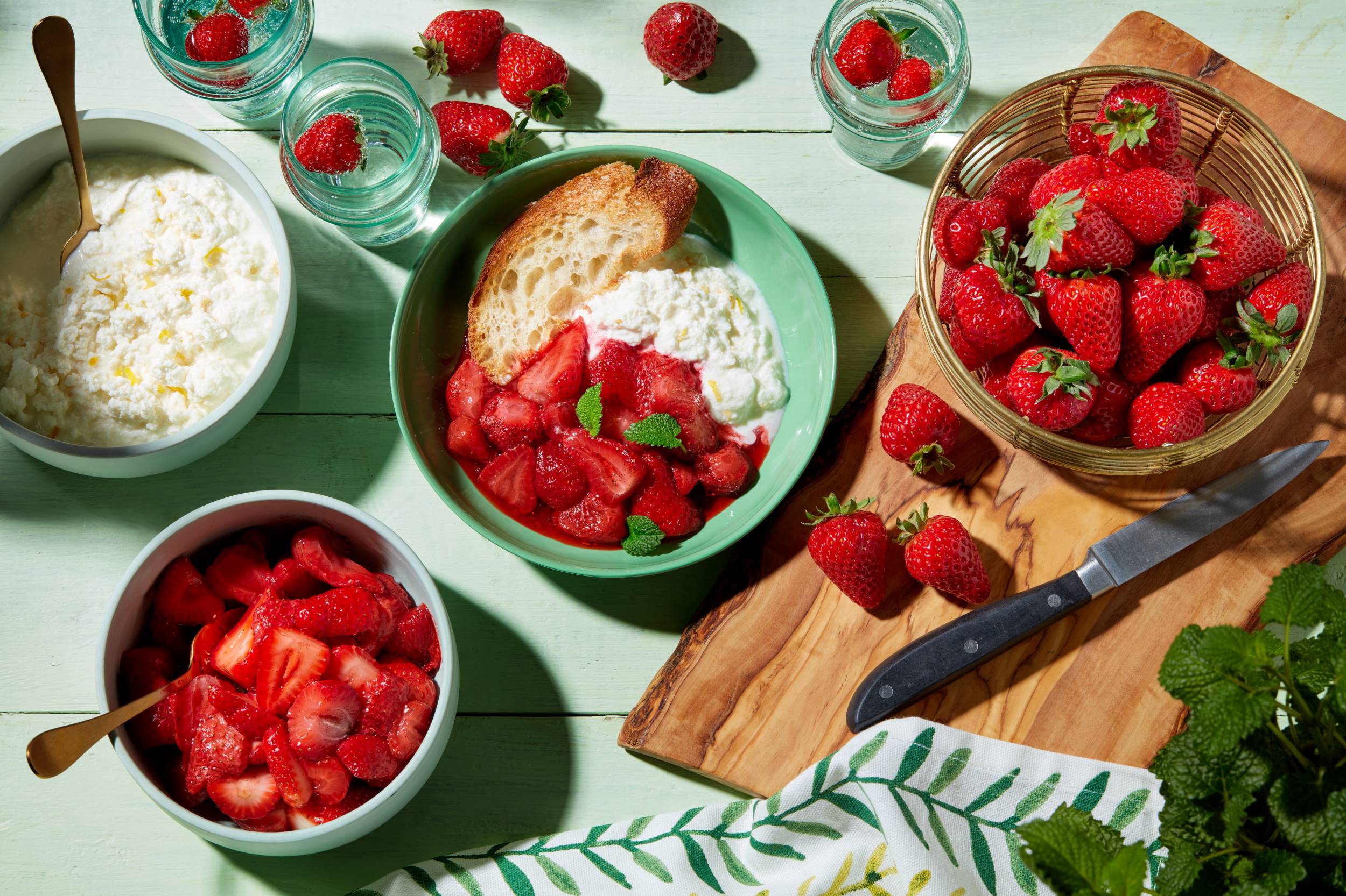 Spoon ricotta and roasted berries over waffles, toasted sourdough, crumpets or English muffins